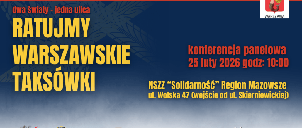 Serdecznie zapraszamy do udziału w konferencji panelowej organizowanej przez NSZZ „Solidarność” Region Mazowsze oraz Sekcję Taksówkarzy Regionu Mazowsze, która odbędzie się 25 lutego od godz. 10:00 w siedzibie Regionu Mazowsze w Warszawie, ul. Wolska […]