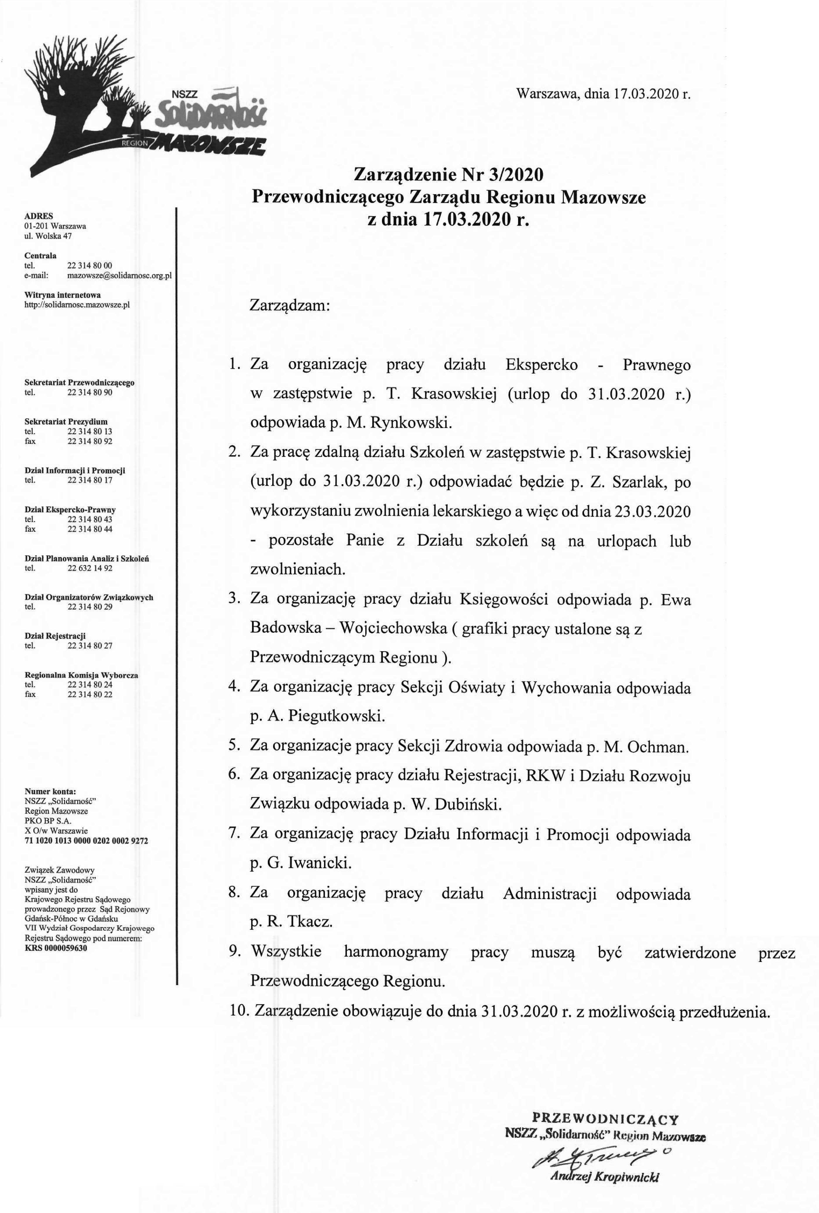 Zarządzenie Przewodniczącego ZRM nr 3.2020 z dn. 17.03.2020-1