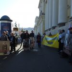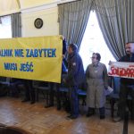 Podczas gdy zebrani pikietowali przed wejściem do budynku, przedstawiciele OKP weszli na salę obrad, gdzie trwała sesja Sejmiku. Związkowcy trzymali transparent z napisem „Muzealnik nie zabytek, musi jeść” oraz flagi NSZZ „Solidarność”. Maciej Mechliński Przewodniczący Sekcji Pracowników Muzeów Regionu Mazowsze został dopuszczony do głosu i mógł zwrócić się bezpośrednio do Radnych. – Jesteśmy na ostatnim posiedzeniu Sejmiku w tej kadencji i chcieliśmy Państwu „podziękować” za brak zainteresowania naszą sytuacją. Wymaga się od nas podnoszenia kwalifikacji i żebyśmy jak najlepiej pełnili nasze obowiązki, a wielu pracowników muzeów pracuje za 2200 zł na rękę i musimy za to jeszcze wyżywić nasze rodziny. Pracownicy z 30 i 40- letnim stażem mają podstawę pensji ok. 3500 zł. – powiedział Mechliński. – Bardzo mnie cieszy, że znajdują się pieniądze na remontowanie placówek muzealnych, ale my tynkiem się nie wyżywimy. Skoro Sejmik podjął się opieki nad dobrem kultury narodowej, to niech Radni pamiętają, że to nie są tylko budynki, ale to są też ludzie, którzy chcą godnie żyć – dodał. Maciej Mechliński na zakończenie wystąpienia zwrócił się z prośbą do tych Radnych, którzy będą znów zasiadać w następnej kadencji o to, aby pamiętali po wyborach o sytuacji pracowników muzeów.