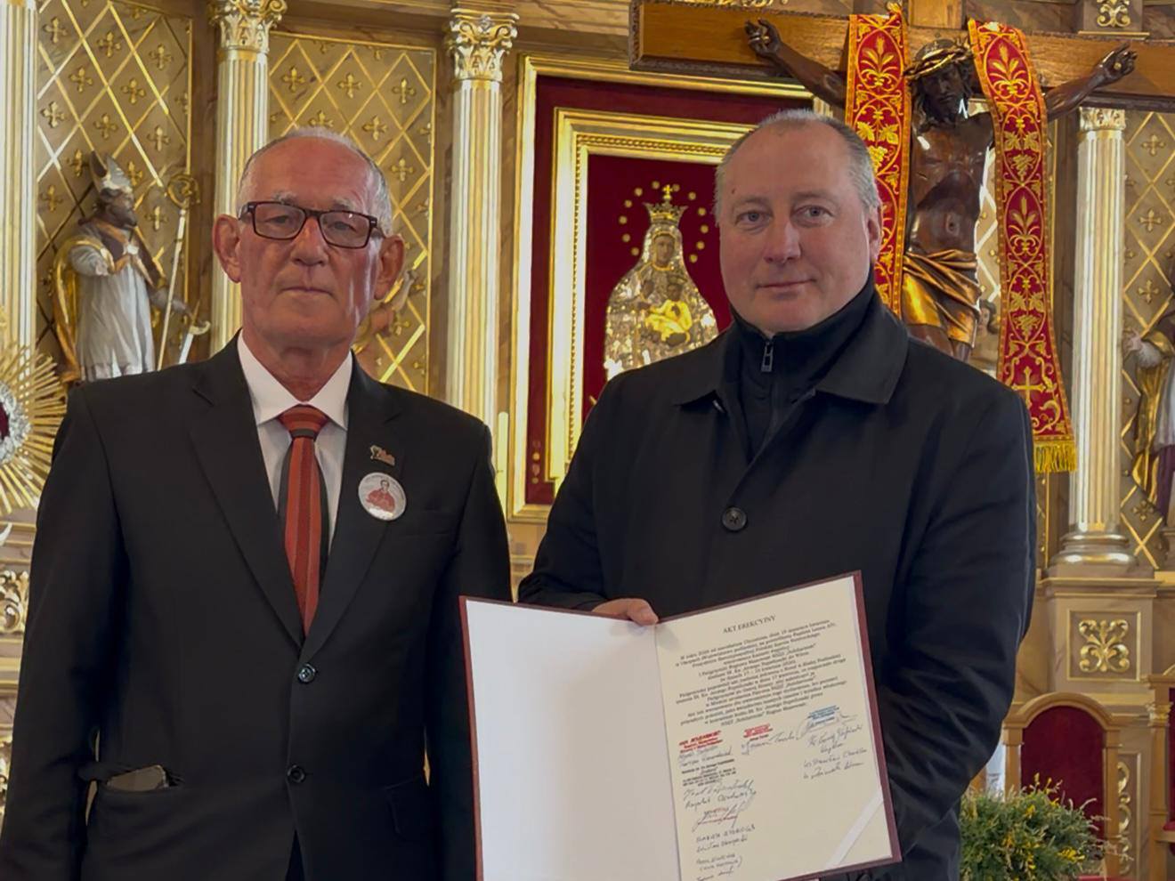 Ostatni etap pielgrzymki prowadził do Okopów i Suchowoli — miejsc nierozerwalnie związanych z młodzieńczymi latami bł. ks. Jerzego Popiełuszki. W jego rodzinnej parafii odbyła się uroczystość podpisania aktu erekcyjnego oraz poświęcenia kamienia węgielnego pod budowę muzeum poświęconego kapłanowi.
